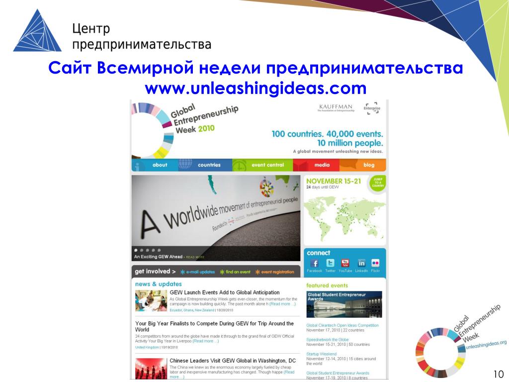 Сайт Всемирной недели предпринимательстваwww.unleashingideas.com