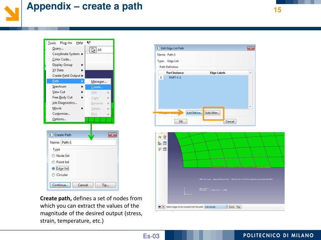 Appendix – create a path Create path, defines a set of nodes from which you can extract the values of the magnitude of the desired output (stress, strain, temperature, etc.)