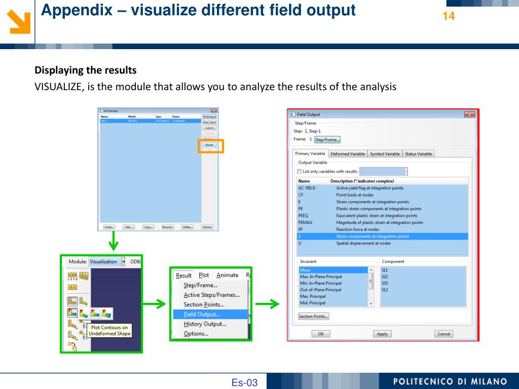 Appendix – visualize different field output Displaying the results VISUALIZE, is the module that allows you to analyze the results of the analysis