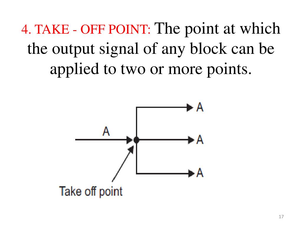4. TAKE - OFF POINT: The point at which the output signal of any block can be applied to two or more points.