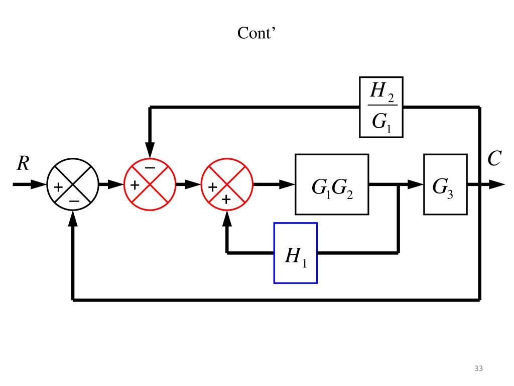 2. OUTPUT:The value of input multiplied by the block gainC(s) = G(s)R(s)3. SUMMING POINT: A point at which two or more signals can be added or subtracted.