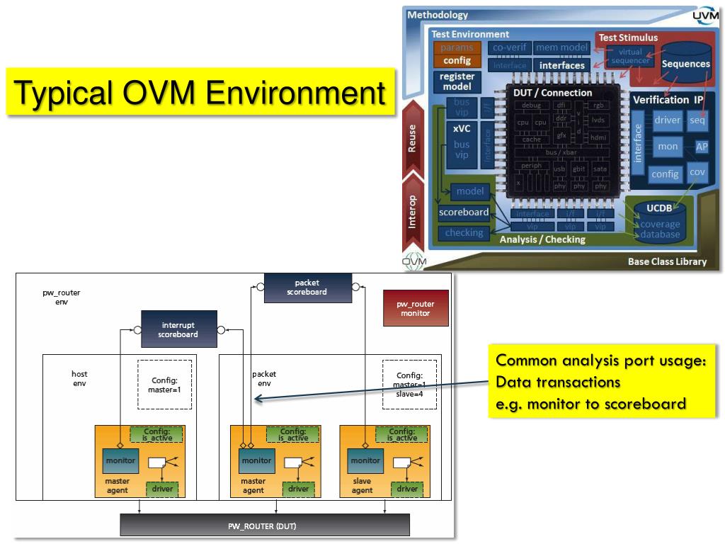 Authors. Paul Marriott p aul.marriott@verilab.com. s ponsored by. Run-Time Configuration of a Verification Environment A Novel Use of the OVM/UVM Analysis Pattern. Authors. Mark Ronan mronan@diablo-technologies.com. Typical OVM Environment. Common analysis port usage: