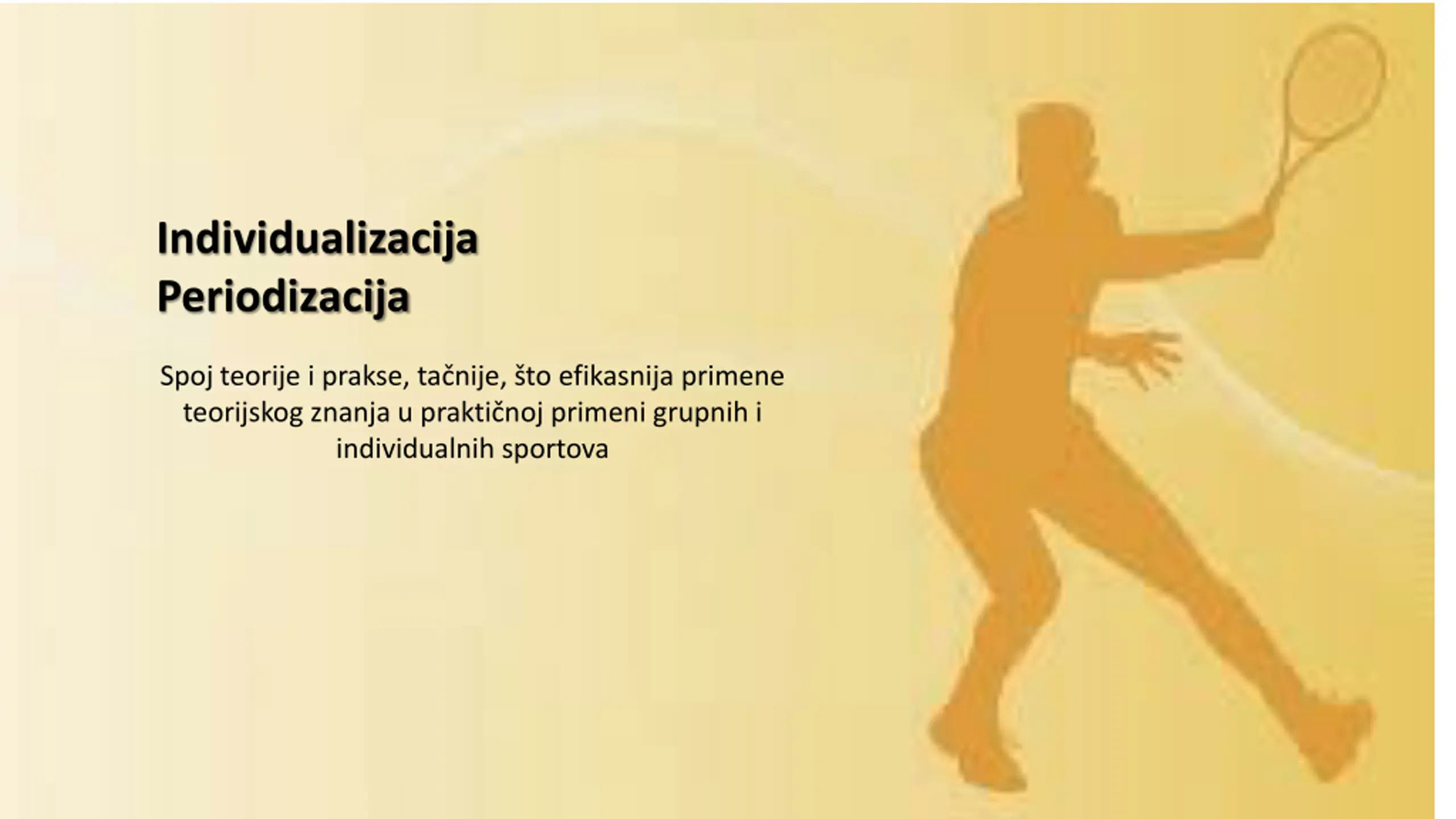 1. Individualizacija Periodizacija Spoj teorije i prakse, tačnije, što efikasnija primene teorijskog znanja u praktičnoj primeni grupnih i individualnih sportova
