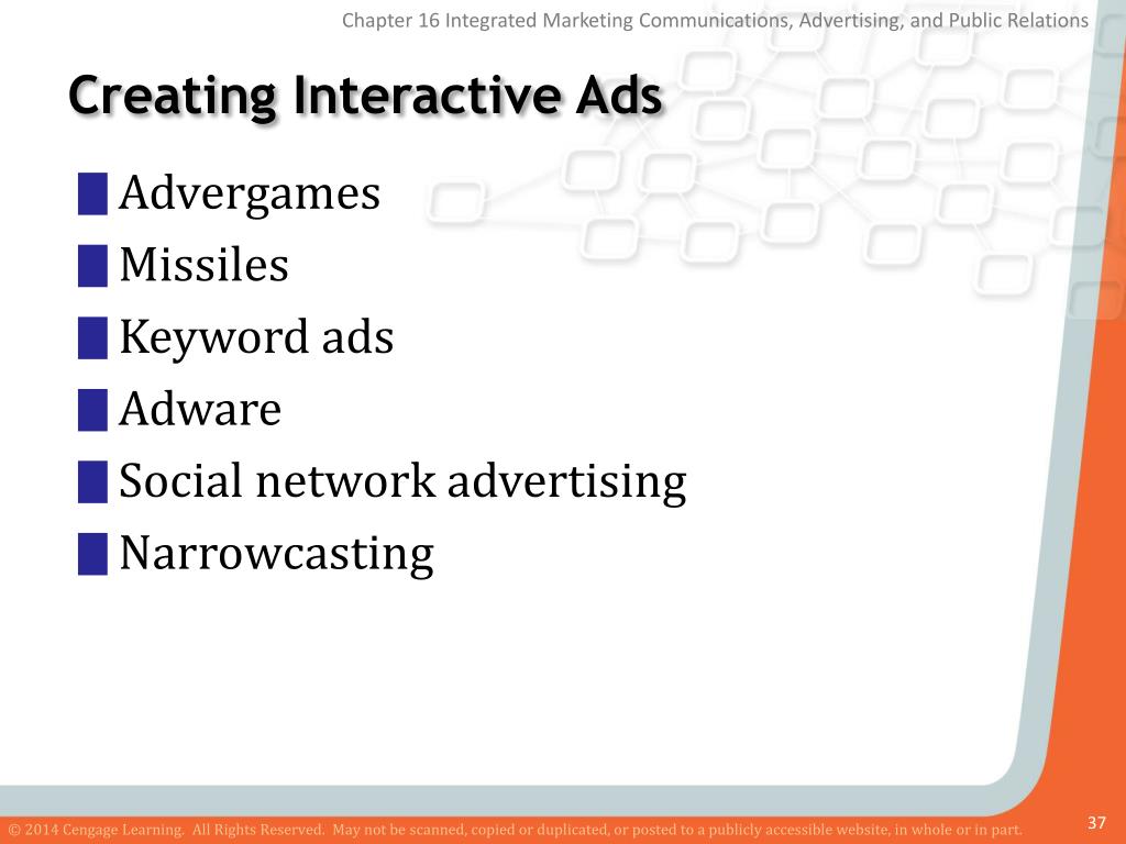 Creating Interactive Ads • Advergames • Missiles • Keyword ads • Adware • Social network advertising • Narrowcasting