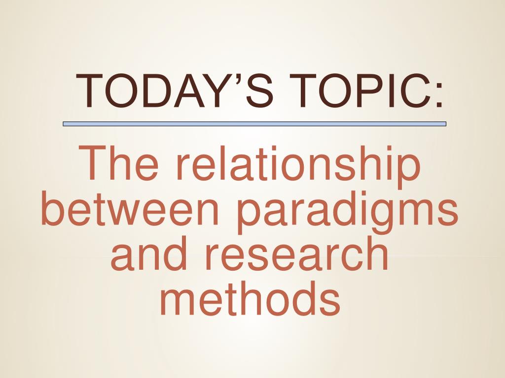 TODAY’S TOPIC: The relationship between paradigms and research methods
