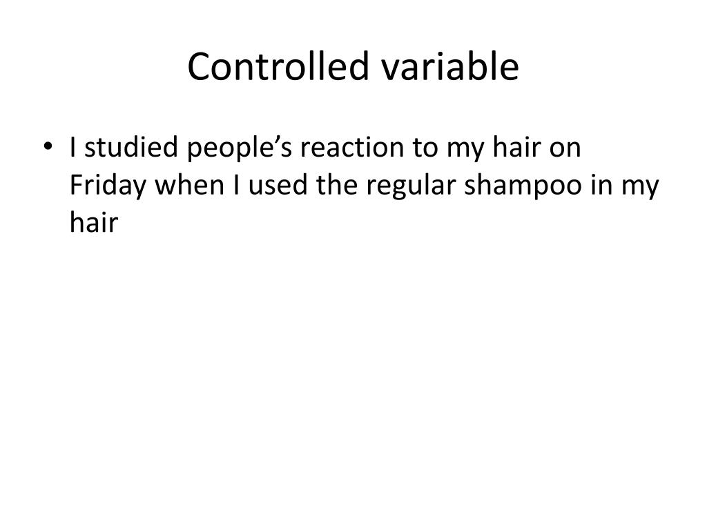 Controlled variable • I studied people’s reaction to my hair on Friday when I used the regular shampoo in my hair