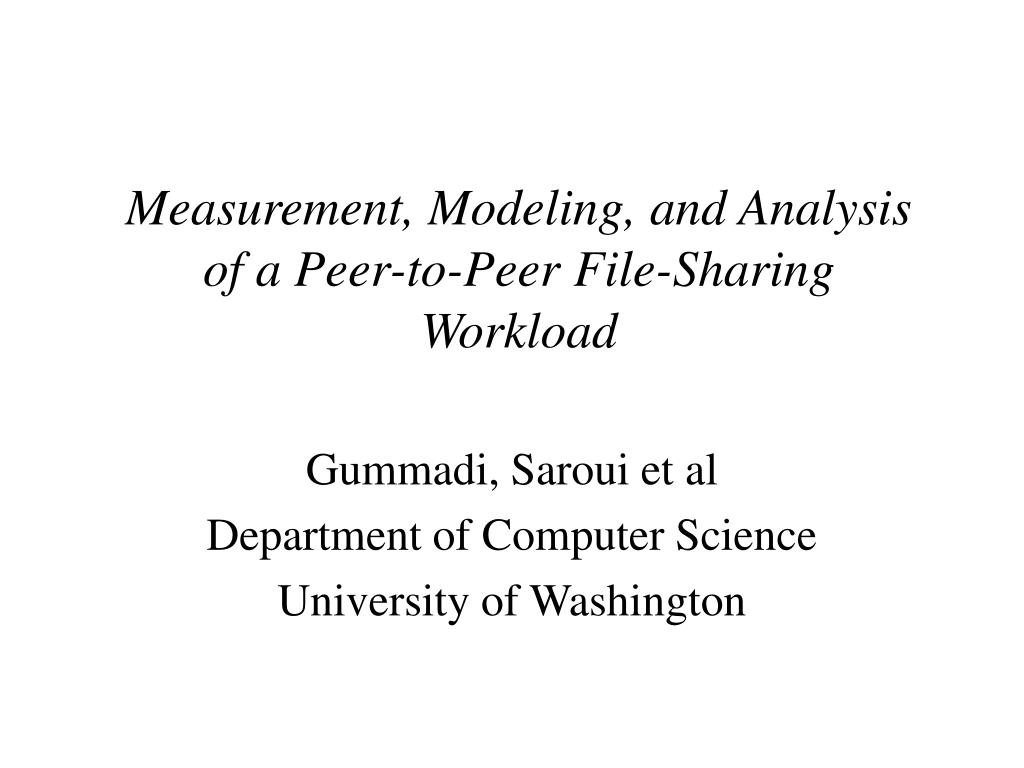Measurement, Modeling, and Analysis of a Peer-to-Peer File-Sharing Workload Gummadi, Saroui et al Department of Computer Science University of Washington