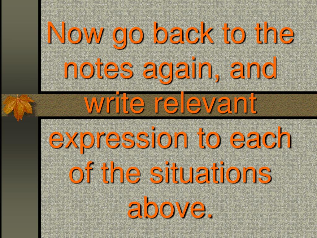 Now go back to the notes again, and write relevant expression to each of the situations above.
