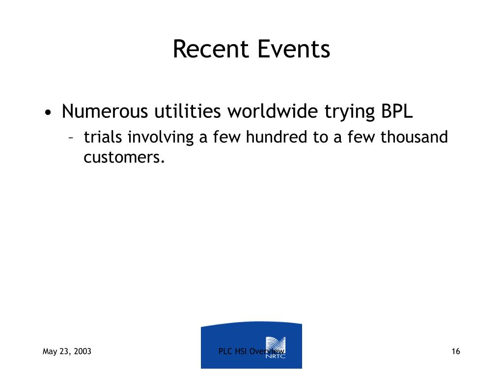 Recent Events • 2001 - 2003 • PLC broadband vendor and developer activity increased considerably. PLC HSI Overview