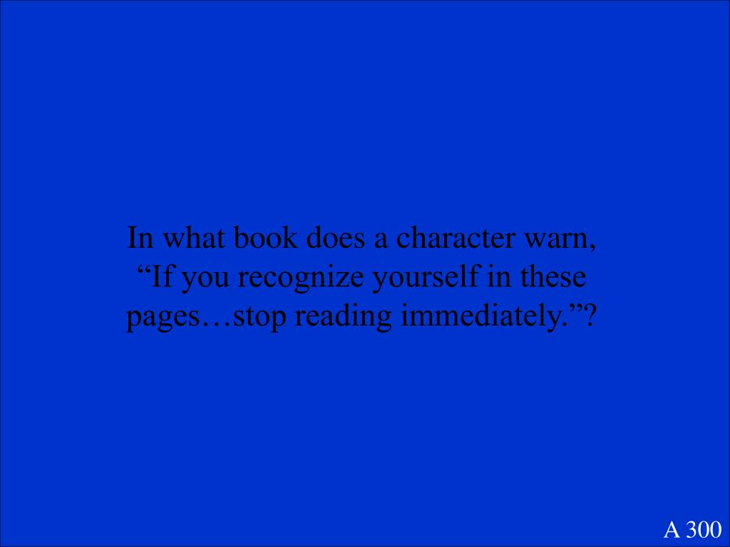 In what book does a character warn, “If you recognize yourself in these pages…stop reading immediately.”? A 300