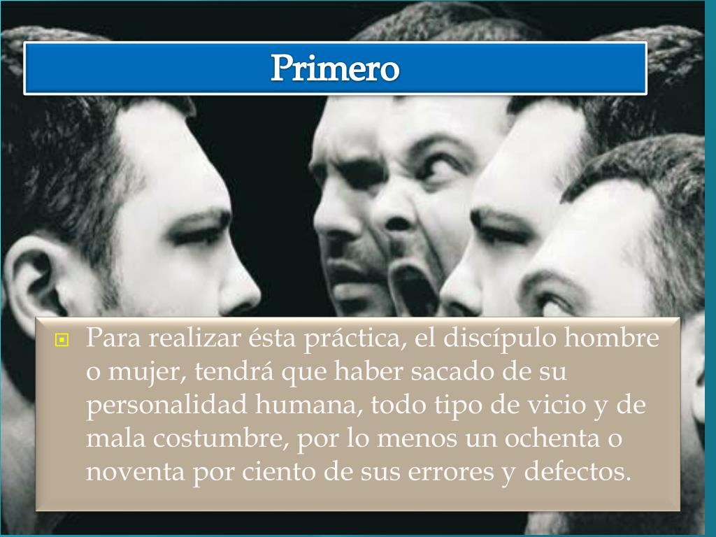 Primero • Para realizar ésta práctica, el discípulo hombre o mujer, tendrá que haber sacado de su personalidad humana, todo tipo de vicio y de mala costumbre, por lo menos un ochenta o noventa por ciento de sus errores y defectos.