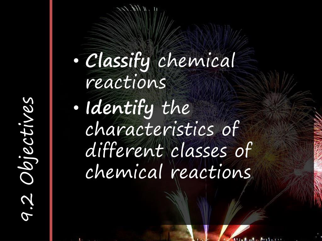 9.2 Objectives • Classify chemical reactions • Identify the characteristics of different classes of chemical reactions