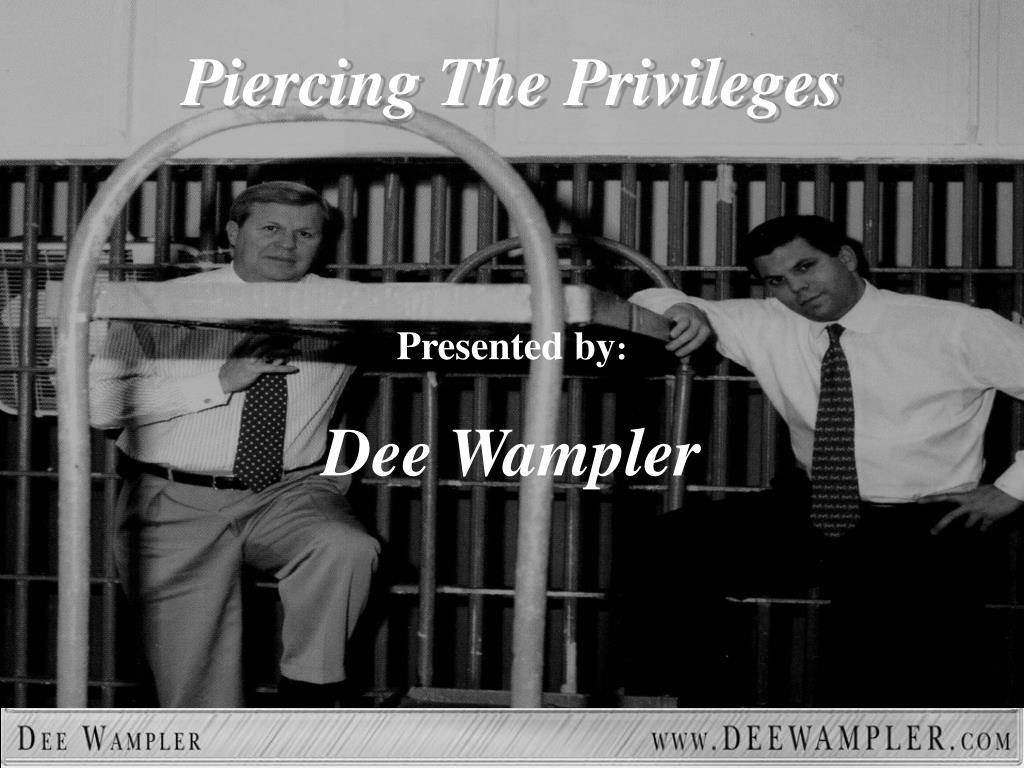 Piercing The Privileges. Presented by : Dee Wampler. Piercing The Privileges. General Overview. Piercing The Privileges. 1.1. Absolute Privilege v. Conditional Privilege. 1.2. Statutory Waiver of Privileges. 1.3. Freedom on Information Act. 1.4. Probation and Parole Records.