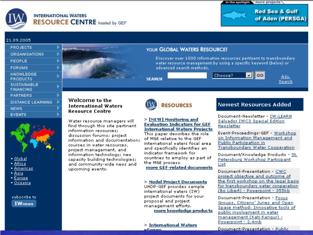 IW:LEARN The GEF International Waters Learning Exchange and Resource Network September 20, 2005