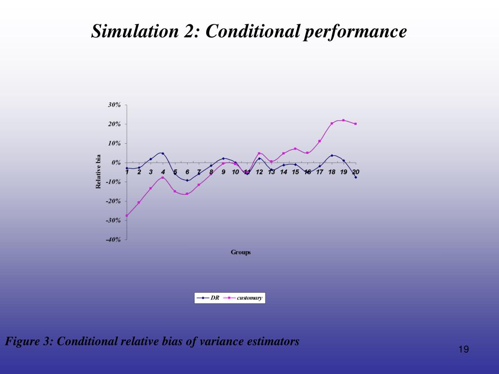 Simulation 2: Conditional performance Figure 3: Conditional relative bias of variance estimators