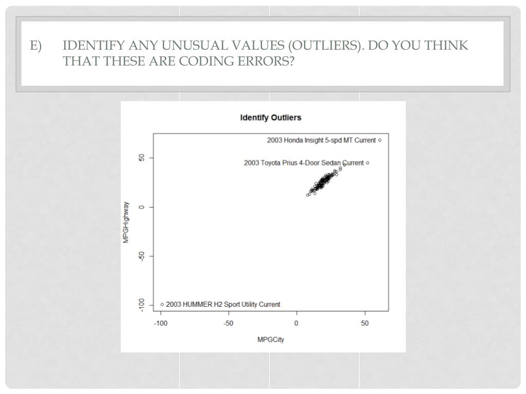 E) Identify any unusual values (outliers). Do you think that these are coding errors?
