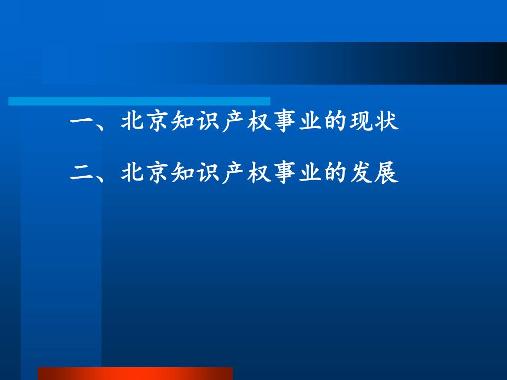 一、北京知识产权事业的现状 二、北京知识产权事业的发展