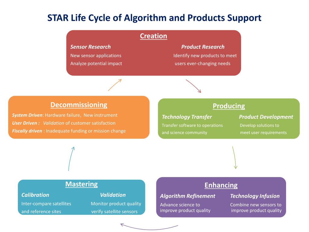 STAR Applied Science • Mission: • To select, develop, test, calibrate, validate, and demonstrate algorithms that meet the User requirements and provide them to the Operational Ground Programs. • Provide sustained life cycle calibration, validation, enhancements and User engagement • End-to-End Capabilities • Instrument Trade Studies • Proxy Dataset Development • Algorithm Development and Testing • Product Demonstration Systems • Development of Cal/Val Tools • Integrated Cal/Val Enterprise System • Radiance and Product Calibration Validation • Algorithm and application improvements • Science Long Term Maintenance • User Readiness and Education Algorithm Development Risk Reduction Algorithm Intercomparison Algorithm Selection and Demonstration