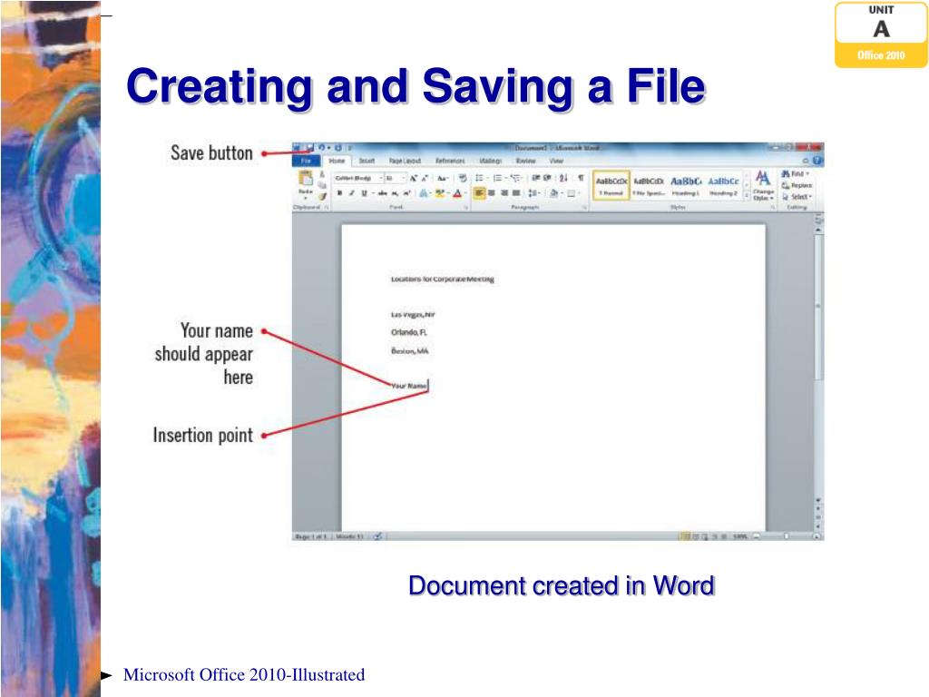 Creating and Saving a File Document created in Word Microsoft Office 2010-Illustrated