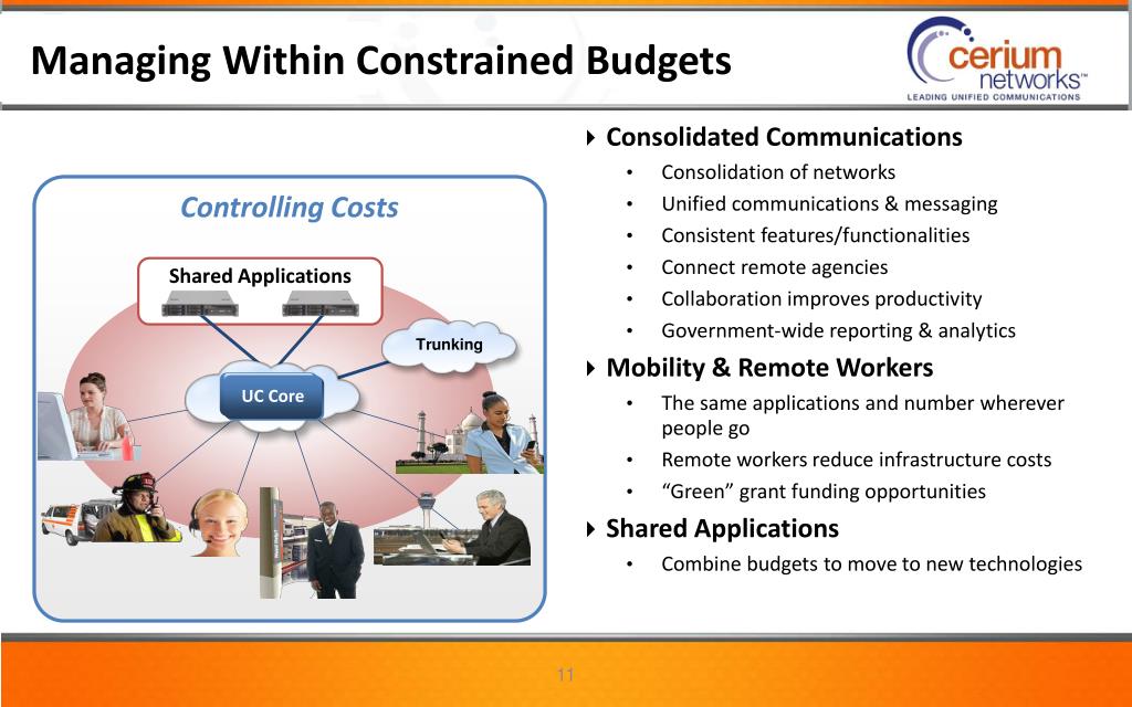Benefits of Unified Communications • Productivity Gains • Efficiency Gains • Infrastructure Savings • Reduced Footprint • Disaster Recovery Improvements • Ease of Administration • Remote Access to Business Systems • Expansion of Citizen Service