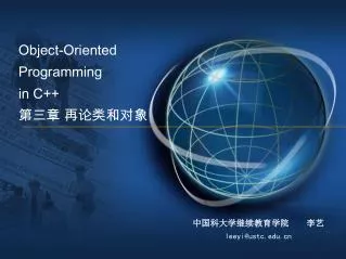 Object-OrientedProgramming in C++第三章 再论类和对象 中国科大学继续教育学院 李艺 leeyi@ustc.edu.cn
