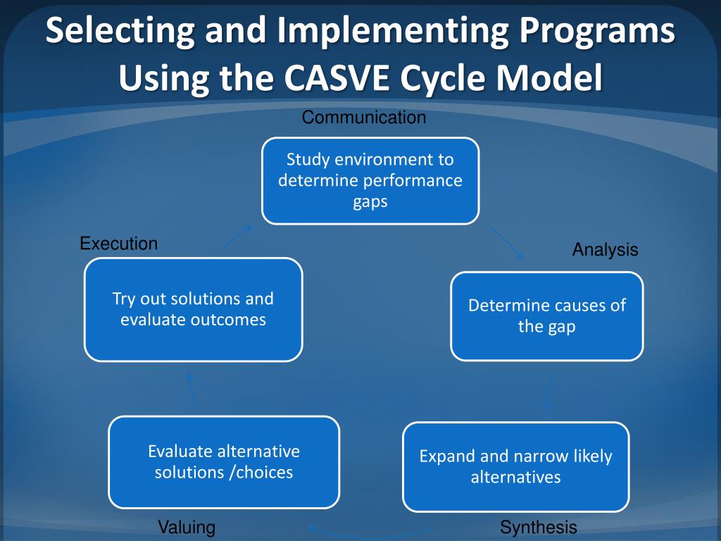 Selecting and Implementing Programs Using the CASVE Cycle Model Communication Execution Analysis Valuing Synthesis