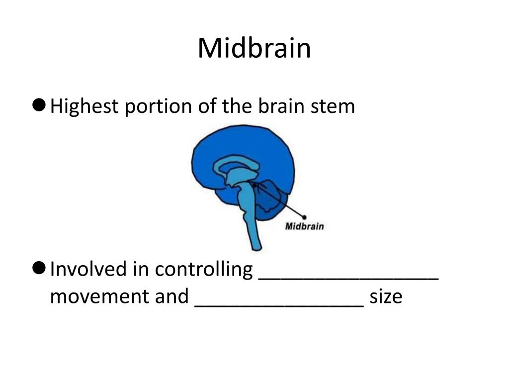 Midbrain • Highest portion of the brain stem • Involved in controlling ________________ movement and _______________ size