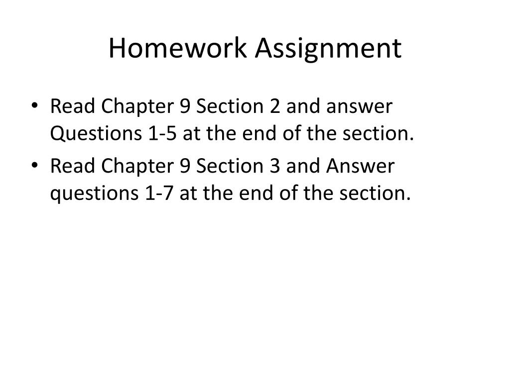 Homework Assignment • Read Chapter 9 Section 2 and answer Questions 1-5 at the end of the section. • Read Chapter 9 Section 3 and Answer questions 1-7 at the end of the section.