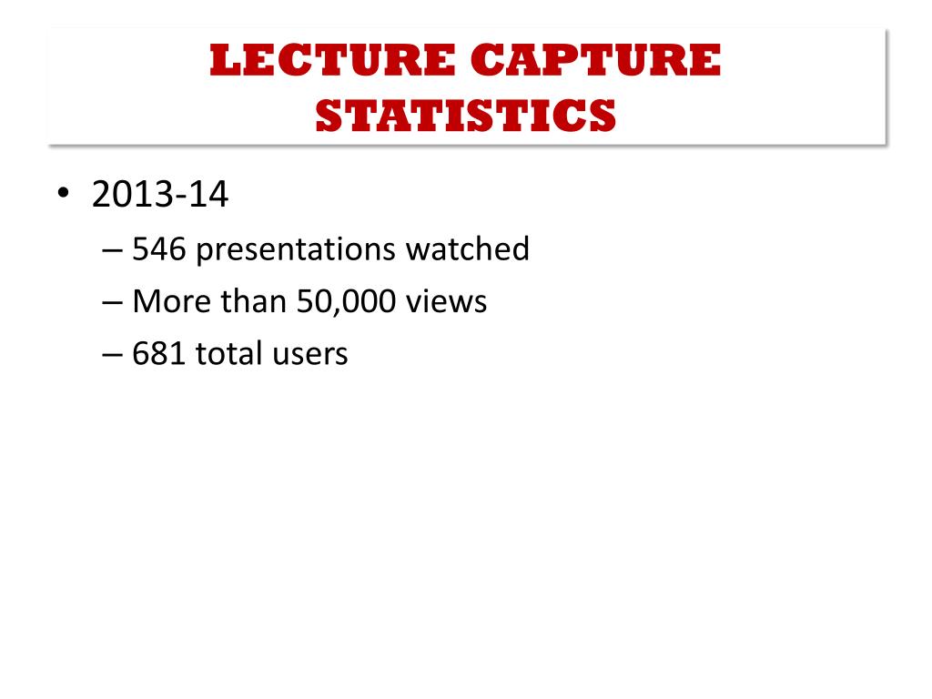 Lecture Capture Statistics • 2013-14 • 546 presentations watched • More than 50,000 views • 681 total users