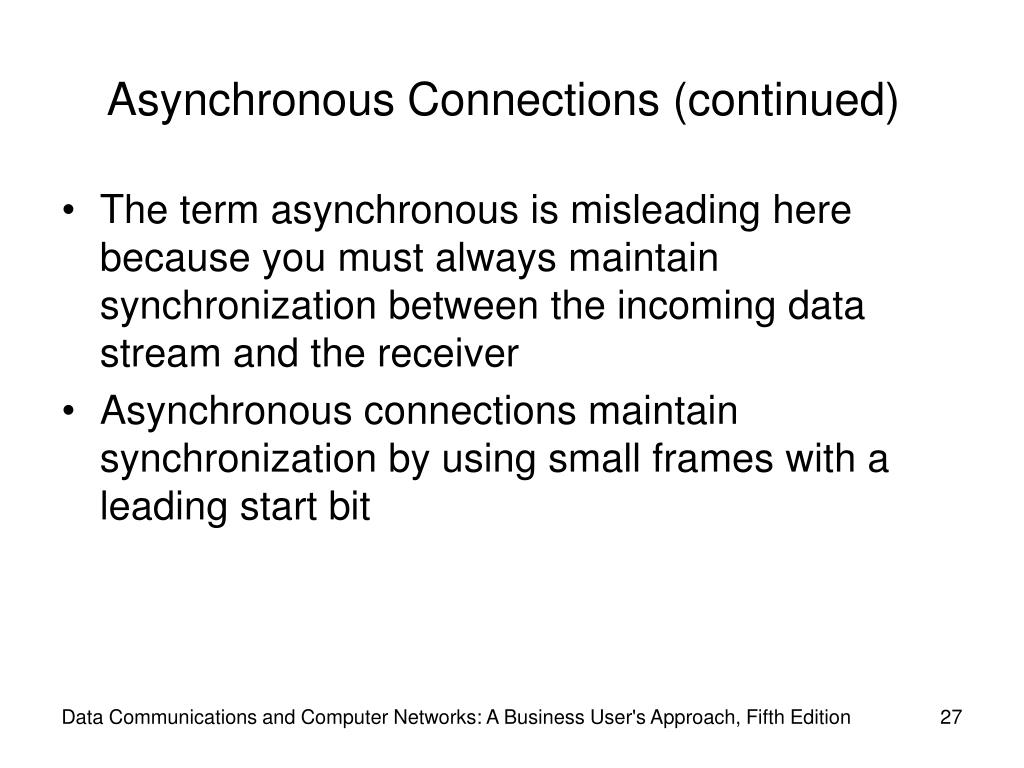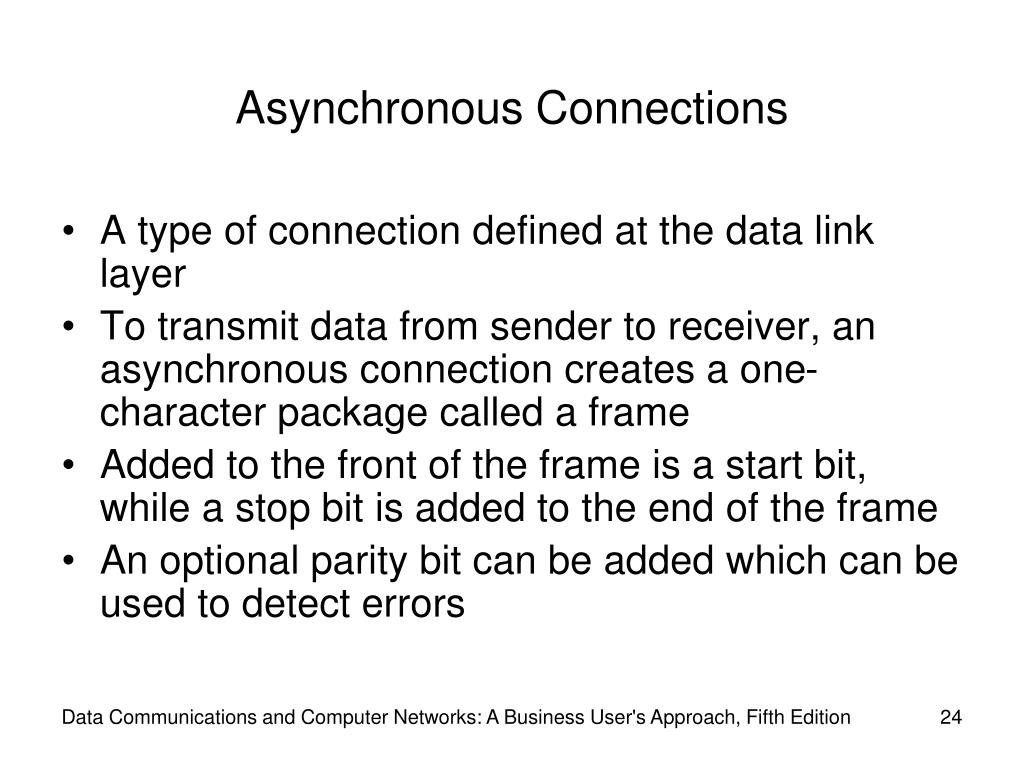 Asynchronous Connections (continued) Data Communications and Computer Networks: A Business User's Approach, Fifth Edition