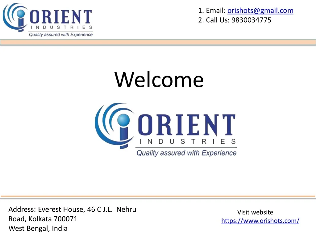 1. Email: orishots@gmail.com 2. Call Us: 9830034775 Welcome Address: Everest House, 46 C J.L. Nehru Road, Kolkata 700071 West Bengal, India Visit website https://www.orishots.com/