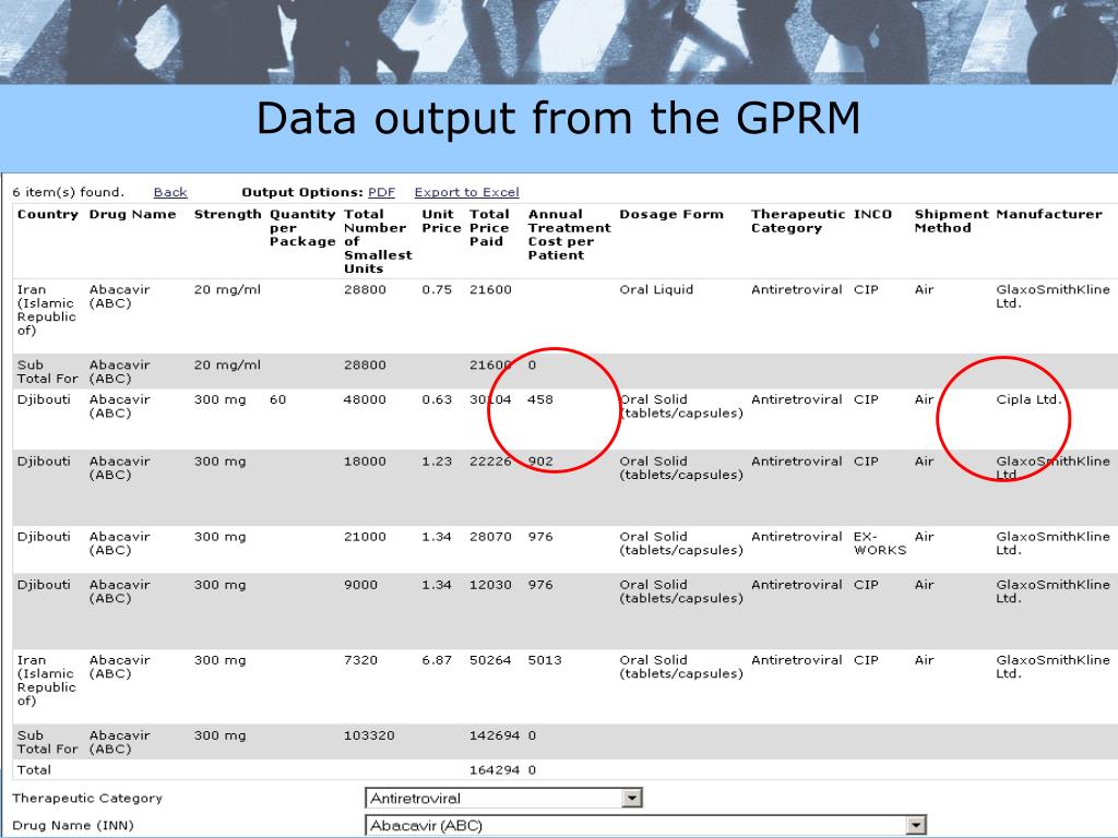GPRM Procurement information comes from: Global Fund JSI/Deliver MSH PEPFAR WHO CPS UNFPA • CHAI/UNITAID • Crown Agent • IAPSO UNDP • IDA HIV/AIDS • MissionPharma • Unicef • Global Drug Facility GRPM captures around 70% of ARV transactions in low and middle income countries