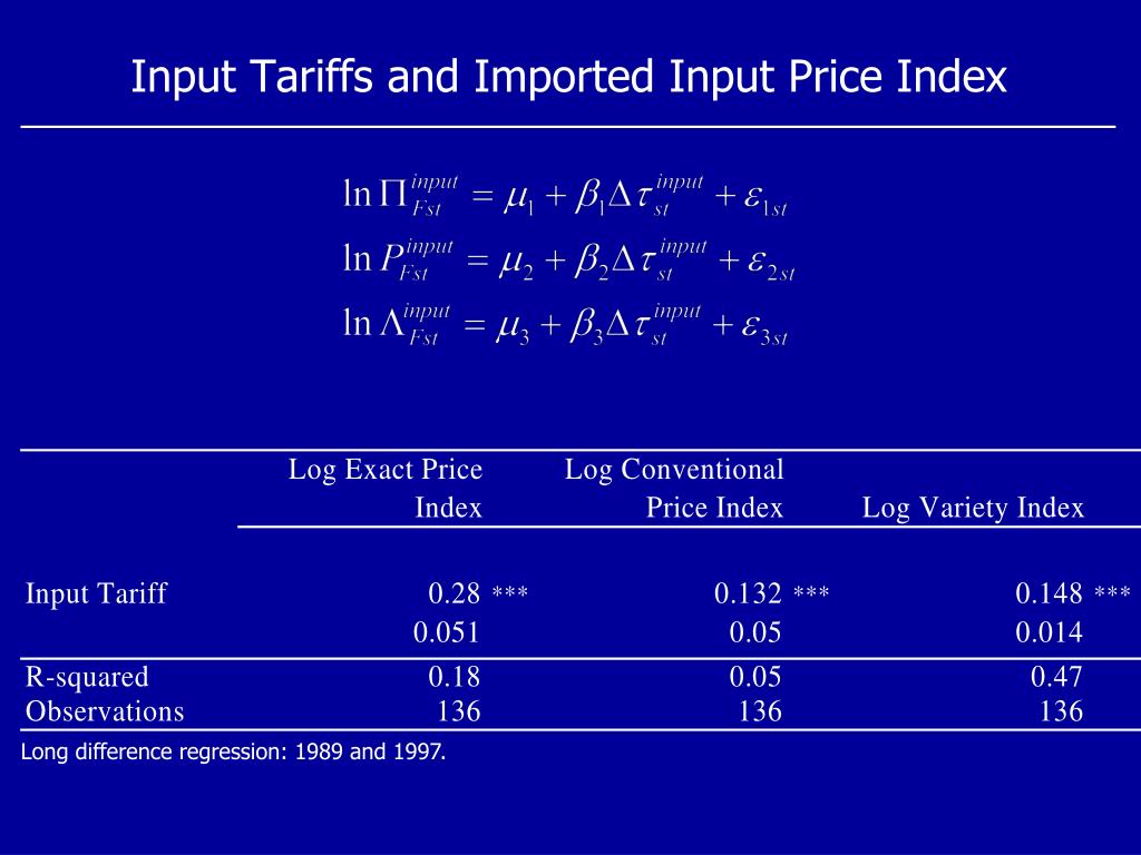Input Tariffs and Imported Input Price Index Long difference regression: 1989 and 1997.