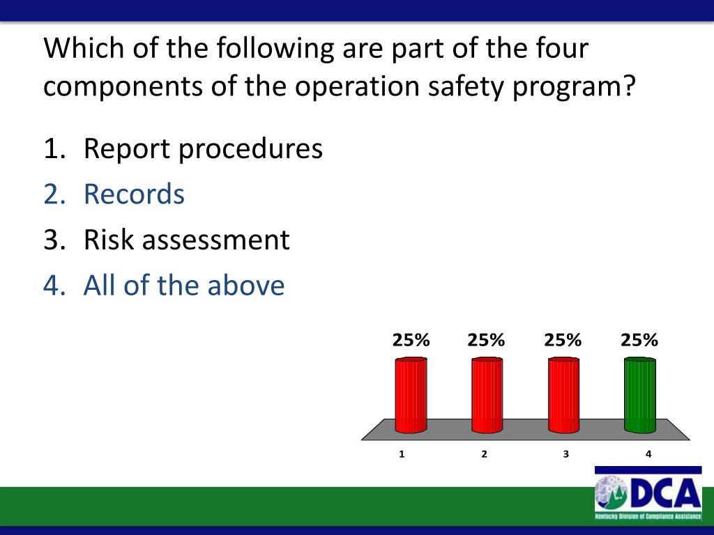 Which of the following are part of the four components of the operation safety program? • Report procedures • Records • Risk assessment • All of the above