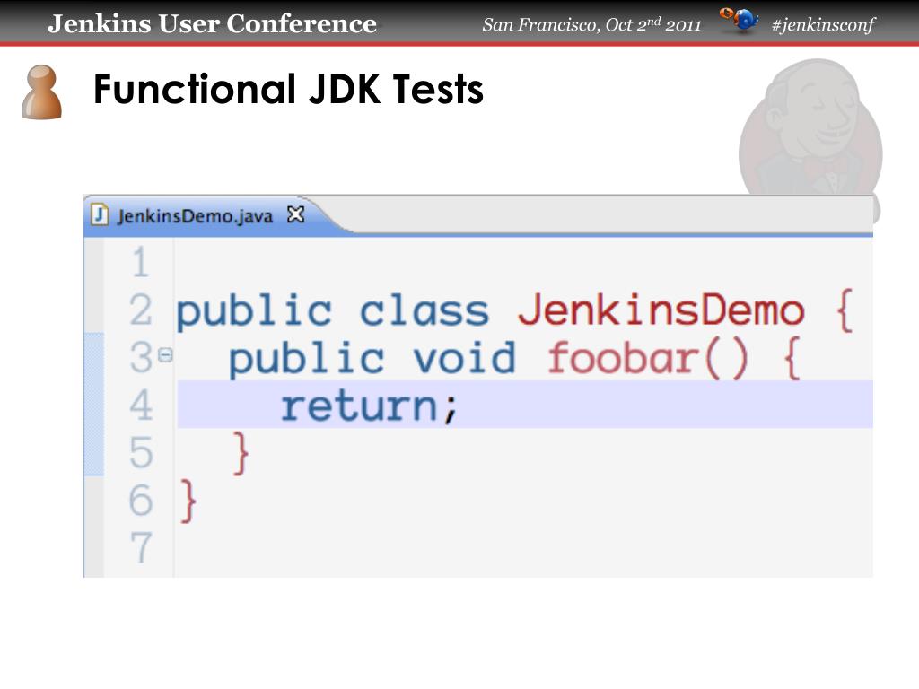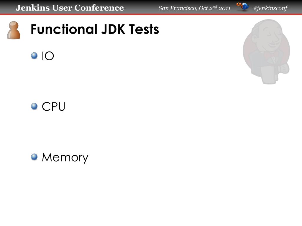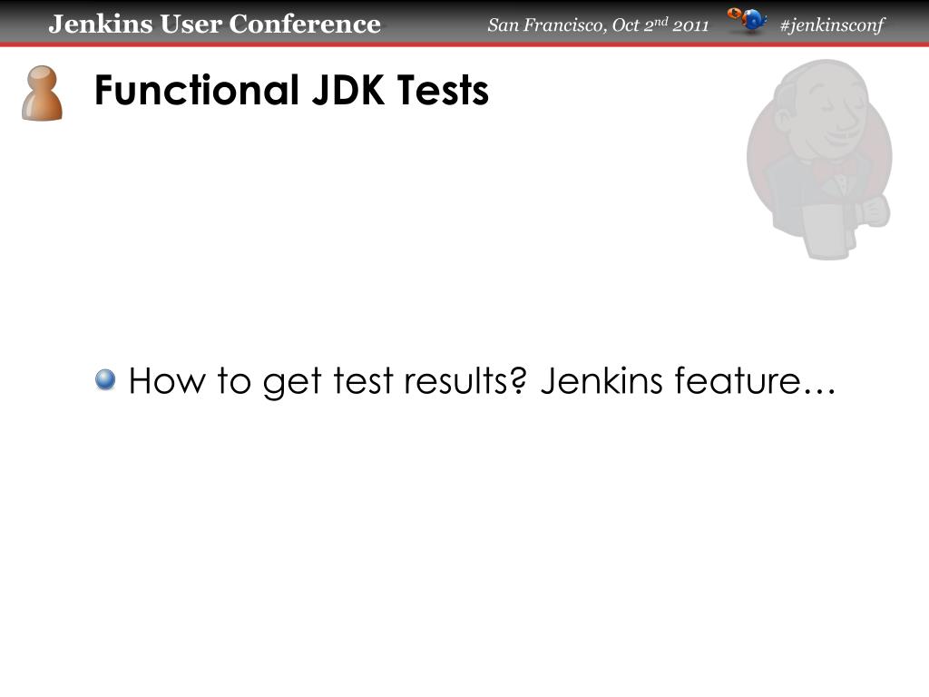 Functional JDK Tests • How to get test results? Jenkins feature…