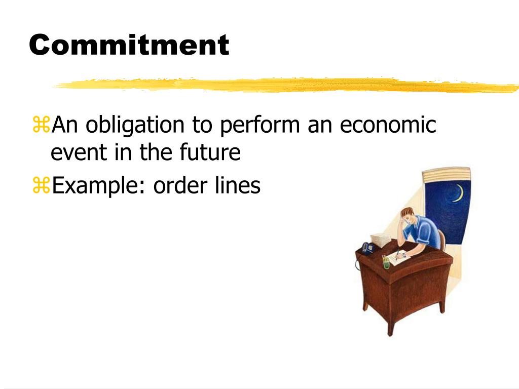 Commitment • An obligation to perform an economic event in the future • Example: order lines