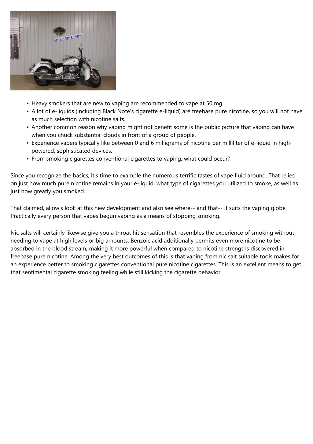 • • Heavy smokers that are new to vaping are recommended to vape at 50 mg. A lot of e-liquids (including Black Note's cigarette e-liquid) are freebase pure nicotine, so you will not have as much selection with nicotine salts. Another common reason why vaping might not benefit some is the public picture that vaping can have when you chuck substantial clouds in front of a group of people. Experience vapers typically like between 0 and 6 milligrams of nicotine per milliliter of e-liquid in high- powered, sophisticated devices. From smoking cigarettes conventional cigarettes to vaping, what could occur? • • • Since you recognize the basics, it's time to example the numerous terrific tastes of vape fluid around. That relies on just how much pure nicotine remains in your e-liquid, what type of cigarettes you utilized to smoke, as well as just how greatly you smoked. That claimed, allow's look at this new development and also see where-- and that-- it suits the vaping globe. Practically every person that vapes begun vaping as a means of stopping smoking. Nic salts will certainly likewise give you a throat hit sensation that resembles the experience of smoking without needing to vape at high levels or big amounts. Benzoic acid additionally permits even more nicotine to be absorbed in the blood stream, making it more powerful when compared to nicotine strengths discovered in freebase pure nicotine. Among the very best outcomes of this is that vaping from nic salt suitable tools makes for an experience better to smoking cigarettes conventional pure nicotine cigarettes. This is an excellent means to get that sentimental cigarette smoking feeling while still kicking the cigarette behavior.