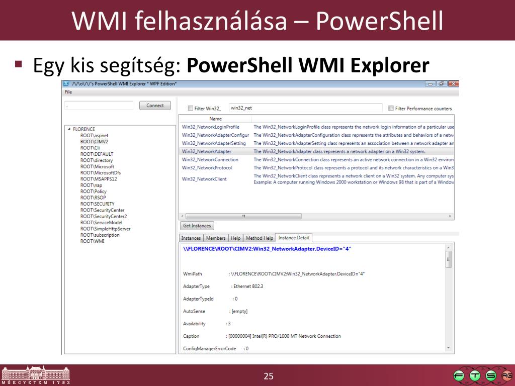 WMI felhasználása – PowerShell • Egy kis segítség: PowerShell WMI Explorer