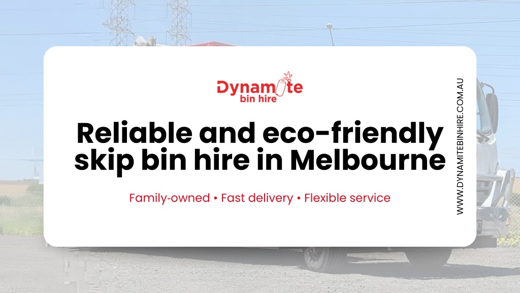 WWW.DYNAMITEBINHIRE.COM.AU Reliable and eco-friendly skip bin hire in Melbourne Family‑owned • Fast delivery • Flexible service