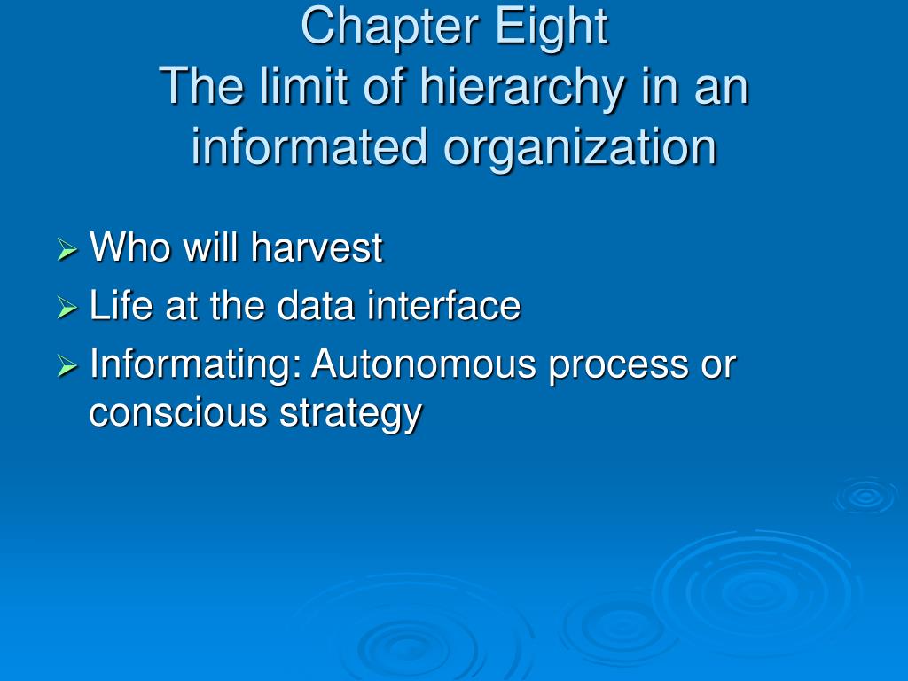 Chapter EightThe limit of hierarchy in an informated organization • Who will harvest • Life at the data interface • Informating: Autonomous process or conscious strategy