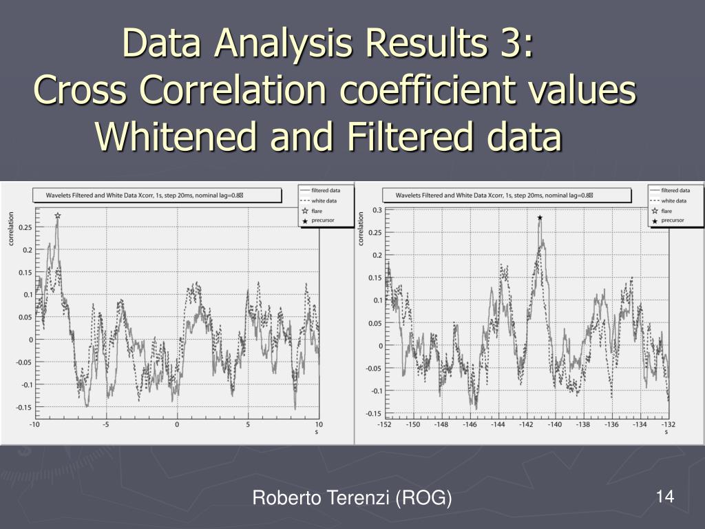 Data Analysis Results 1: Cross Correlation coefficient values Roberto Terenzi (ROG)