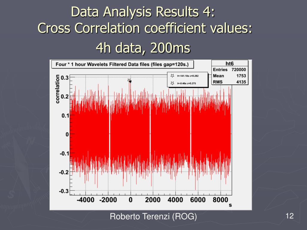 Data Analysis Results 4: Cross Correlation coefficient values:4h data, 200ms Roberto Terenzi (ROG)