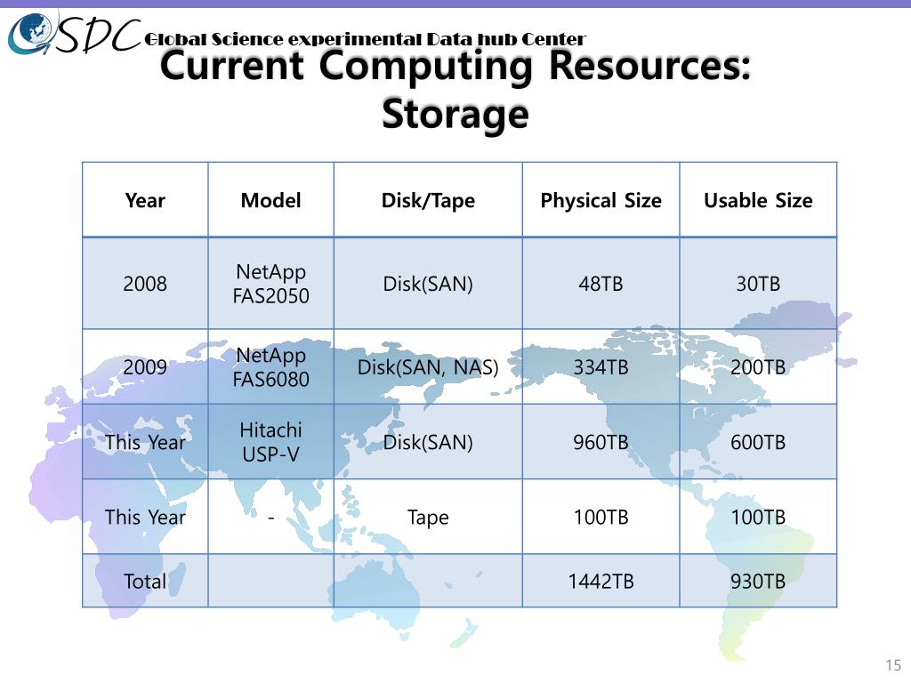 GSDC MISSION Supporting to various Data Intensive Researches Physics Various 2009 ~ Next ~ ALICE STAR Belle CDF Bio-informatics Earth Science Astrophysics National Representative Player in Data Centric Research Area