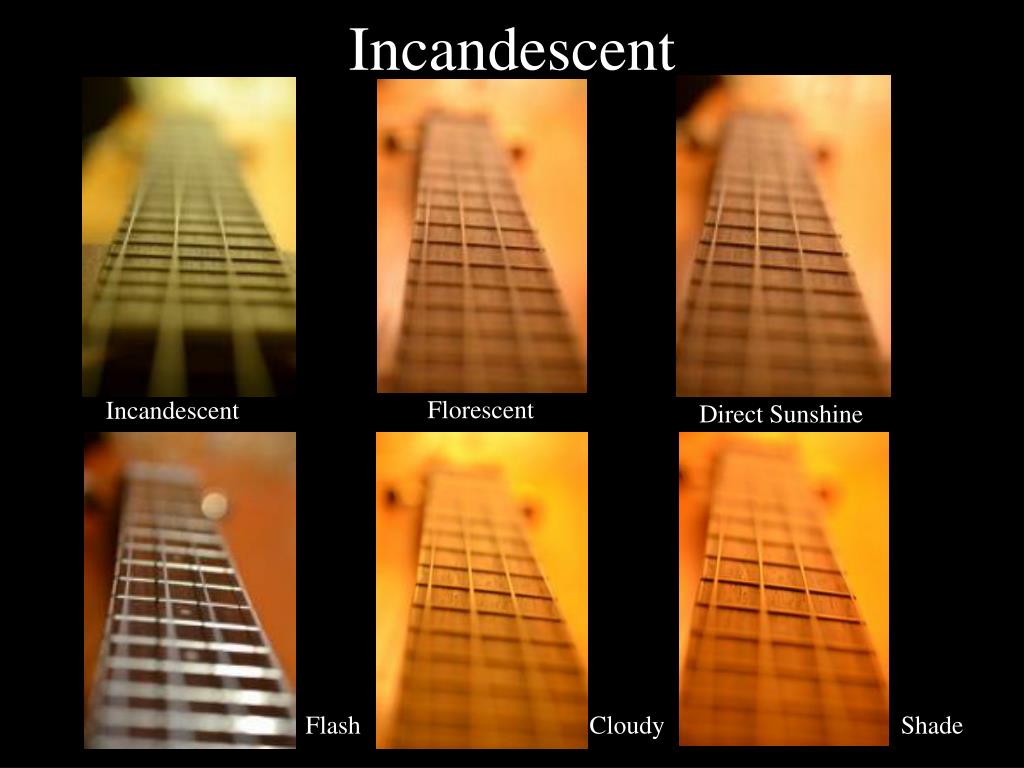 Incandescent Incandescent Florescent Direct Sunshine Flash Cloudy Shade