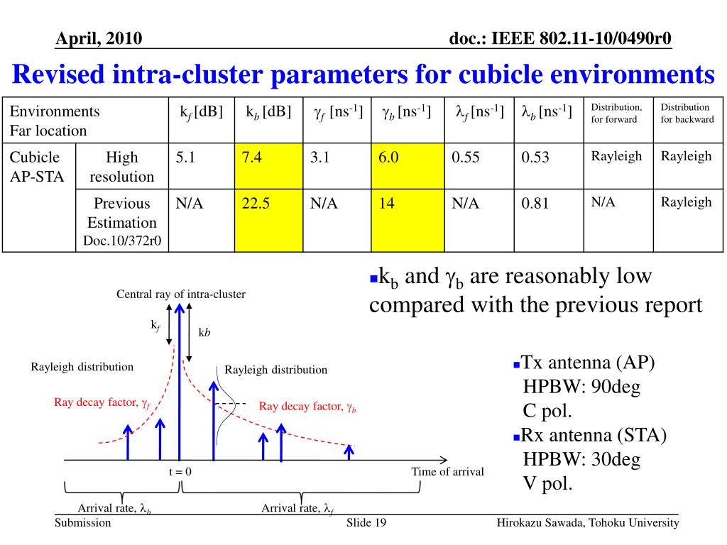 [Intra cluster response model and parameter for the enterprise cubicle environments at 60GHz (Part2)] Date: 2010-4-29 Authors: Hirokazu Sawada, Tohoku University