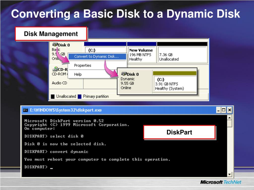 Converting a Basic Disk to a Dynamic Disk Disk Management DiskPart