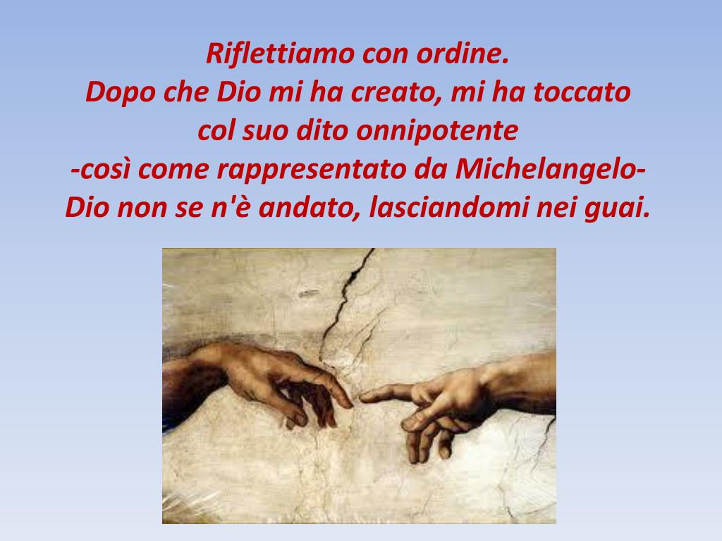 Riflettiamo con ordine. Dopo che Dio mi ha creato, mi ha toccato col suo dito onnipotente -così come rappresentato da Michelangelo- Dio non se n'è andato, lasciandomi nei guai.