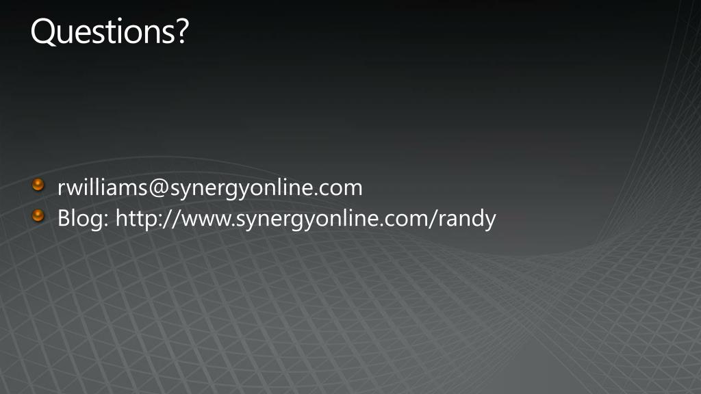 Questions? • rwilliams@synergyonline.com • Blog: http://www.synergyonline.com/randy