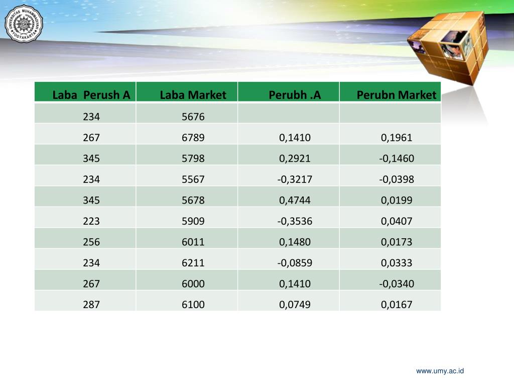 Mengestimasi beta dapat dilakukan dengan meregres kolom 4 dan kolom 5 www.umy.ac.id