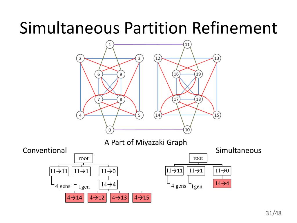 Simultaneous Partition Refinement A Part of Miyazaki Graph Conventional Simultaneous 4 gens 4 gens 1gen 1gen